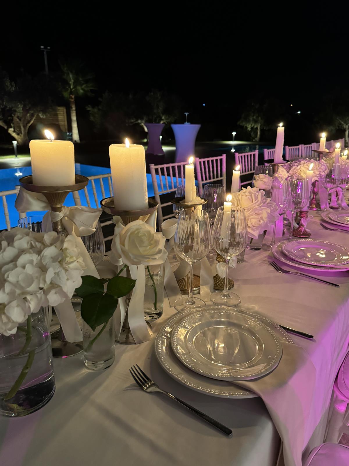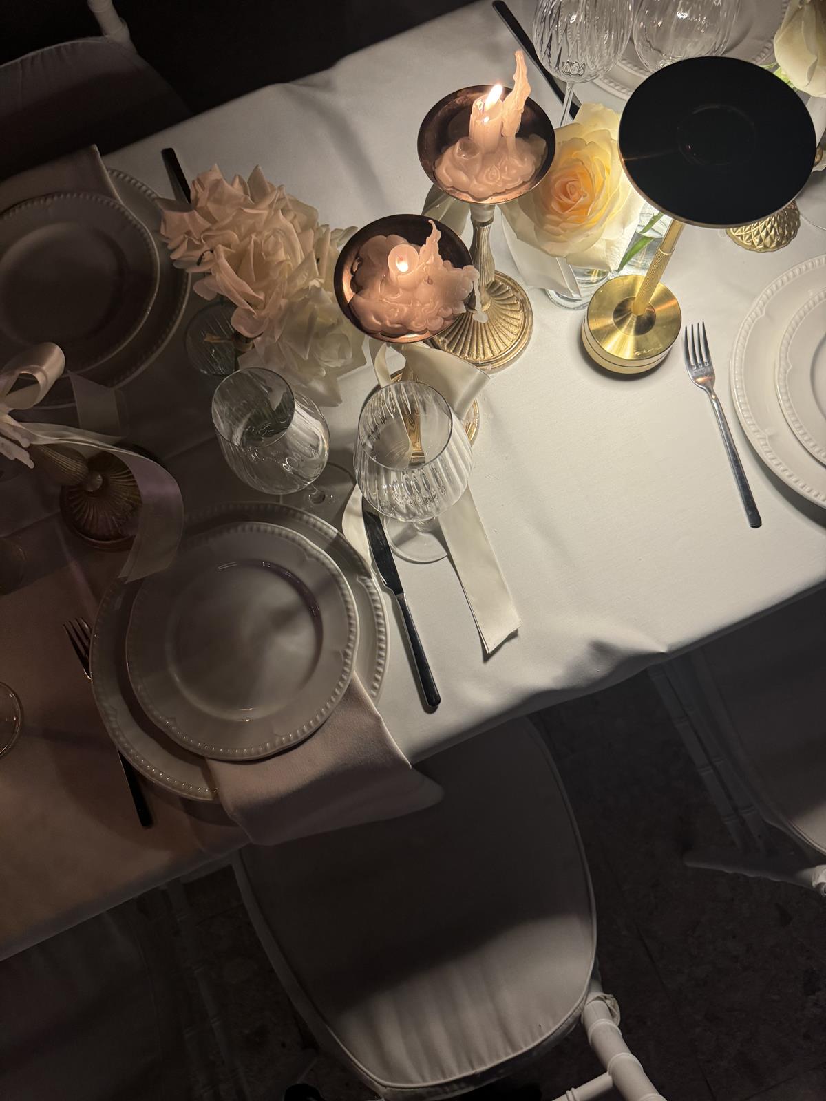 Intimate setups, carefully styled tables and a warm, atmospheric setting — ideal for proposals, anniversaries or unforgettable evenings under the Cretan sky.